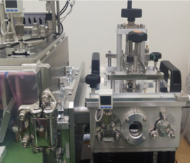 試料基板サイズ:最⼤150㎜/処理枚数 1枚 排気性能:10E-4P台まで45分以内/到達5.0×10E-5Pa PLCによる⾃動制御(タッチパネル操作) ターボ分⼦ポンプ+ドライポンプ 抵抗加熱源:8源 4源/1電源×2セット